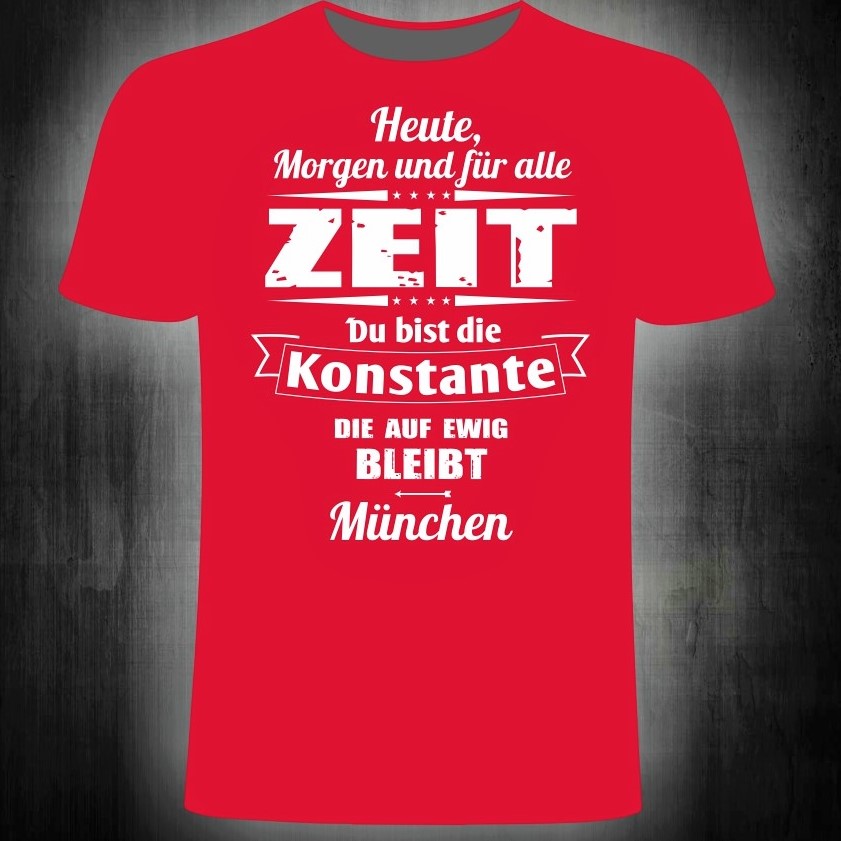 Das neue T-Shirt „Heute, morgen und für alle Zeit!“ in rot mit weißem Aufdruck ist in den Größen S bis 5XL lieferbar.